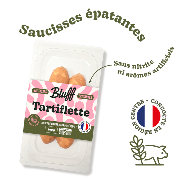 Sur une base de porc, du Reblochon IGP, de la pomme de terre, des épices (oignon, ail, poivre, muscade), un peu de crème et du vin blanc.